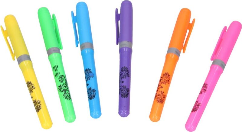 To pakiranje čarobnih flomastrov vsebuje 8 barvnih flomastrov (temno modra, svetlo modra, zelena, rumena, oranžna, rdeča, roza, vijolična) in 2 razvijalna flomastra.