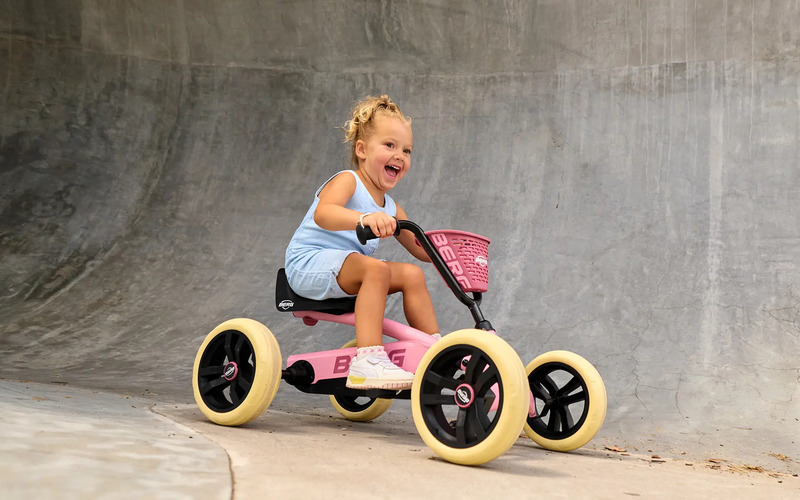BERG Buzzy je stabilen in varen poganjalec s štirimi kolesi, neposrednim pogonom za enostavno poganjanje in trajnimi EVA pnevmatikami, ki se nikoli ne preluknjajo. Zaradi nastavljivega sedeža raste z otrokom (2–5 let)