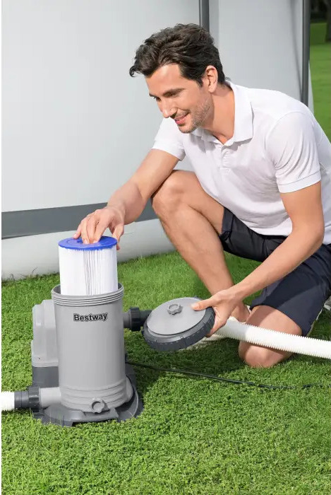 Predstavljamo vam filtracijsko kartušno napravo blagovne znamke Bestway. Tukaj ponujamo popoln komplet za priključitev na vaš bazen.