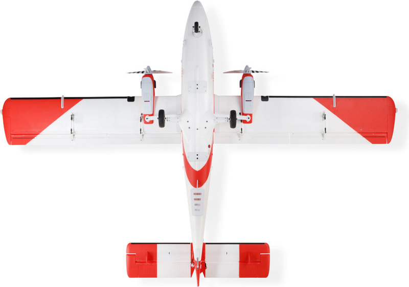 Dvojmotorový RC model lietadla E-flite DHC-6 Twin Otter 1.4m, maketovo spracovaný podľa užitkového lietadla s možnosťou STOL (krátky štart a pristátie). Je vybavený protiběžnými vrtuľami so striedavými motormi a možnosťou napájania 3-4S LiPo. Okrem vzrušujúceho maketového vzhľadu s inštalovaným LED osvetlením, ponúkne model úžasný letový výkon v kombinácii s predvídateľným správaním hornoplánca. Pre štart a pristátie je Twin Otter vybavený vztlakovými klapkami. Táto verzia BNF obsahuje prijímač Spektrum s elektronickým stabilizačným systémom AS3X a SAFE. Vďaka systému SAFE je model vhodný aj pre menej skúsených pilotov, ktorí sa chcú zdokonaliť v pilotáži, zatiaľ čo pokročilí piloti si užijú pohodový let s dvojmotorovým modelom. S elektronikou Spektrum navyše získate funkciu diferenciácie ťahu motorov a voliteľný reverz ťahu.