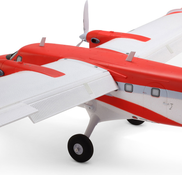Dvojmotorni RC model letala E-flite DHC-6 Twin Otter 1.4m, maketno obdelan po vzoru uporabnega letala z možnostjo STOL (kratki vzlet in pristajanje). Je opremljen s protibegnimi propelerji z izmeničnimi motorji in možnostjo napajanja 3-4S LiPo. Poleg vznemirljivega maketnega videza z nameščenim LED osvetljenjem, model ponuja neverjetno letalsko zmogljivost v kombinaciji s predvidljivim vedenjem visokoletečega letala. Za vzlet in pristajanje je Twin Otter opremljen z dvigalnimi krilci. Ta različica BNF vsebuje sprejemnik Spektrum z elektronskim stabilizacijskim sistemom AS3X in SAFE. Zaradi sistema SAFE je model primeren tudi za manj izkušene pilote, ki se želijo izboljšati v pilotiranju, medtem ko napredni piloti uživajo v udobnem letu z dvomotornim modelom. Z elektroniko Spektrum poleg tega pridobite funkcijo diferenciacije potiska motorjev in opcijski povratni potisk.