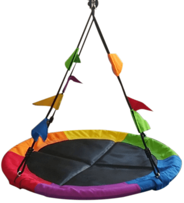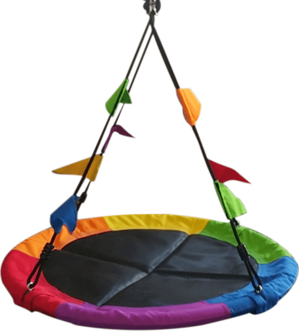 Gugalnica Čapje gnezdo z barvnimi zastavicami iz trdnega materiala z 2 karabinama za obešanje.