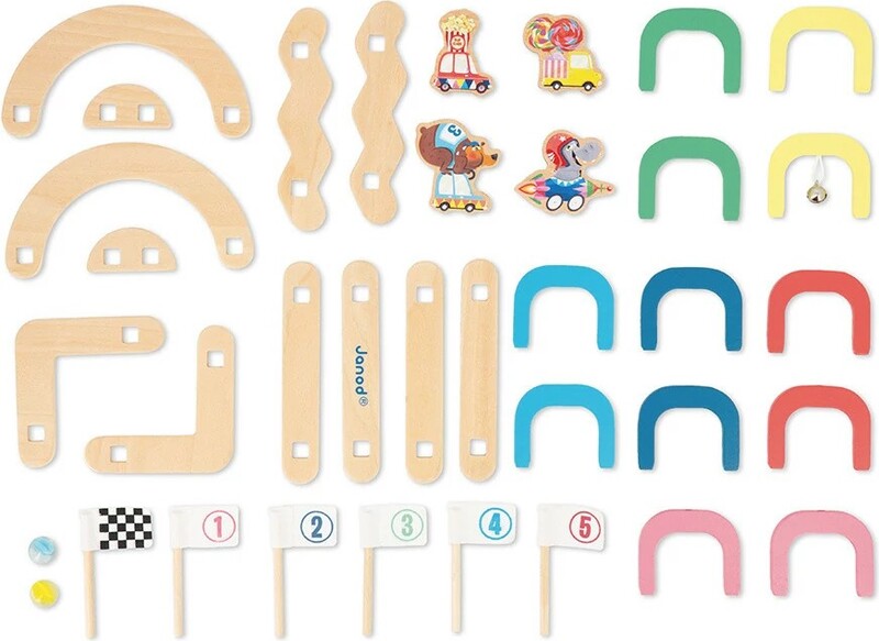 Najmlajši lahko prilagajajo težavnost igre s spreminjanjem proge, kar jim omogoča še večji izziv! Postavite kroglično progo na tla ali na mizo in se zabavajte ob tekmovanju. Ko zazvoni zvonec, je nekdo zmagal!