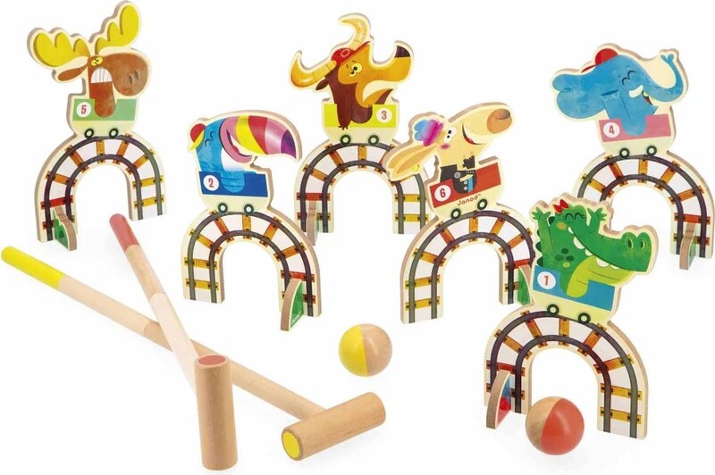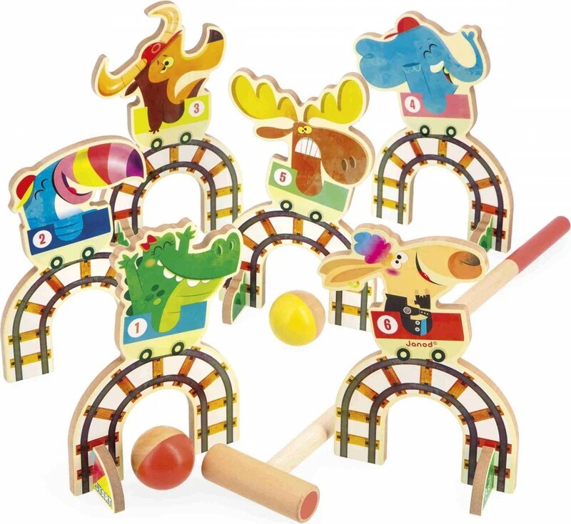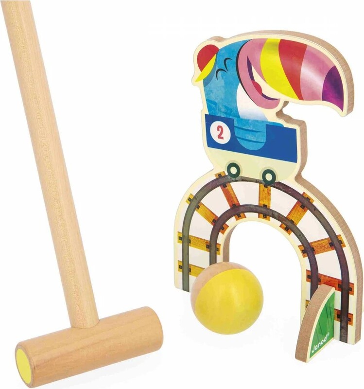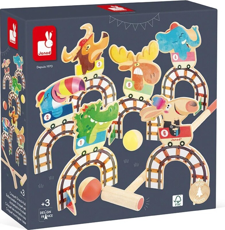 Dvignite roke, atrakcija se pravkar začenja! Pripravite se na razburljivo pustolovščino s to leseno kroket igro, namenjeno otrokom od 3. leta naprej!