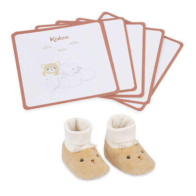 Kaloo - Darilni set copatkov in mejnikovih kartic (medvedek) je čaroben set, ki vam pomaga na izviren način oznaniti prihod dojenčka na svet in ohraniti najlepše prve spomine. Ta set je idealno darilo ob rojstvu otroka, ki združuje praktičnost in nežnost.