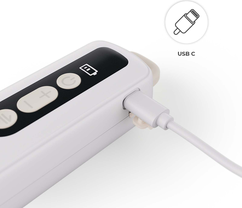 Vsakodnevno udobje podpira vgrajen časovnik, ki prikazuje dolžino črpanja in vam pomaga ohranjati reden ritem brez potrebe po seganju po telefonu. Visokokapaciteta baterija s kapaciteto 1800 mAh, polnjena preko USB-C, zagotavlja do 120 minut delovanja, kar podpira mobilnost - na primer pri črpanju na delu in načrtovanju dneva. Je GENTLEFLOW dobra potovalna črpalka mleka? Nedvomno.