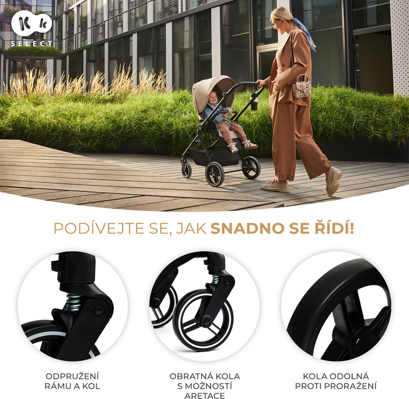 Voziček je na voljo tudi s celotno vrsto praktičnega dodatnega pribora, kot so mreža proti insektom, dežna prevleka, držalo za skodelico, torba za ročaj za starše in adapterji za otroški avtosedež.