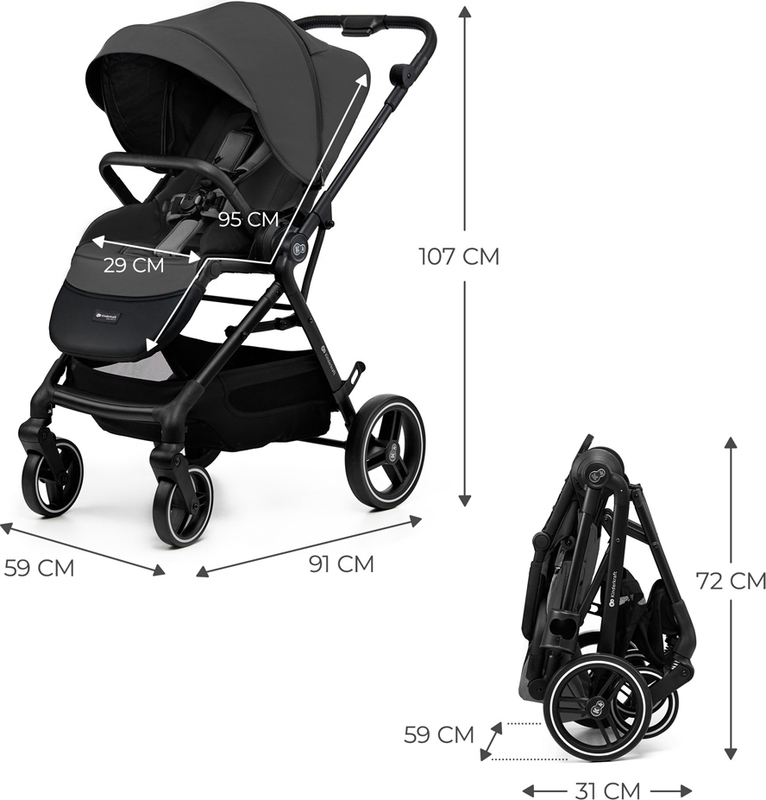 - Dimenzije raztegnjenega vozička: 91 D x 59 Š x 107 V