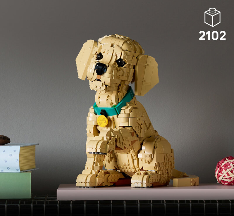 Sestavljanka ŽIVALSKE FIGURE – Privoščite sebi ali bližnjemu to sestavljanko LEGO® Icons Kuža zlatega prinašača (11384) za odrasle in ljubitelje živali