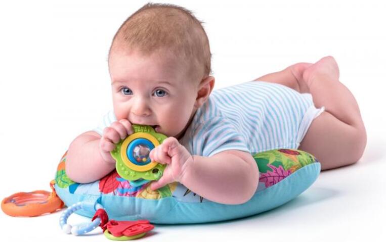Vsak otrok se rad igra z žogicami - dajte mu najbolj ikonično odejo, s katero se lahko igra, lubje vsebuje do 40 žogic! Ta 5-smerna odeja je zelo prilagodljiva in se prilagodi potrebam vašega otroka v kateri koli starosti. Plišaste stranice odeje lahko nastavite navzgor in igralno telovadnico napolnite s 40 barvnimi kroglicami, ki bodo služile kot ograja, da se ne bodo valjale po sobi. Mama in oče se lahko pridružita tudi tako, da spustita kroglice skozi odprtino v mrežastem nadstrešku. Ko otrok odraste, lahko vadi lastne motorične sposobnosti tako, da spušča kroglice s strehe ali pa se tu in tam zvrne ali nahrani! Za manjše dojenčke je odeja za igro razporejena cela, kjer lahko dojenček preživi čas na hrbtu in se igra z igračami na vodoravni palici ali pa se z njimi igra na trebuhu v oporo z blazino, ki je tudi njen del. Veseli slon sveti in predvaja glasbo več kot 20 minut, seveda pa ga lahko vzamete s seboj na izlete. Seveda otrokovo pozornost pritegnejo tudi druge igrače, kot so preobleka s kroglicami, igrača samoroga, varno ogledalo, barvne voščilnice, grizljanje v obliki listov in klopotec s kroglicami. Hura za zabavo! Lastnosti: Lezite in se igrajte - ni važno, ali je na hrbtu ali trebuhu. Megadeka 113 cm - z nastavljivimi stranicami (raztegnjene ali kot ograja). Neskončno zabavna igra z žogicami. Možnost ustvarjanja pregrade - ograjenega prostora. 2 obroča z igračami, obešenimi na obroču C, ki jih lahko odpnete in vzamete na cesto ali pritrdite na voziček ali avtosedež. Glasbeno igračo v obliki slona lahko enostavno pritrdite na prečko in večino otroških postelj. Luči in glasba igrajo več kot 20 minut. Podporna blazina. Vsebuje 40 barvnih kroglic s torbico za enostavno nošenje. Potrebne so 3 baterije AA, ki niso vključene v paket. Primerno za otroke od rojstva. Blazinico lahko operete v pralnem stroju ob nežnem ciklu v hladni vodi, igrače pa enostavno obrišete z vlažno krpo. Dimenzije: 76 x 113 x 53 cm