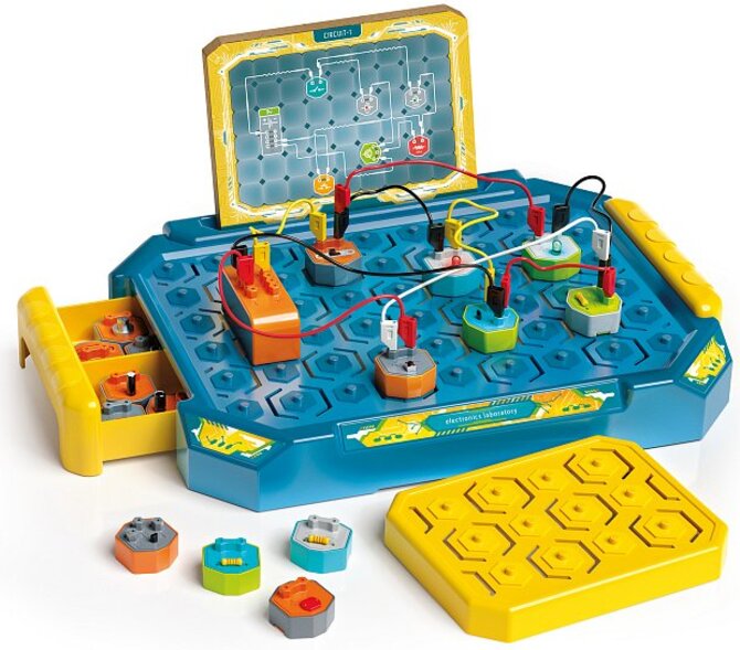 Potovanje v svet elektrike se začne z laboratorijem za izdelavo funkcionalnih elektronskih vezij! S patentiranimi moduli se ustvarjanje električnih vezij spremeni v veliko zabavo! Natančnost pravilne sestave in zmogljivost funkcionalnega vezja za avtonomno učenje z vsemi skrivnostmi elektronike in zabave hkrati. Privlačna igra, ki spodbuja otrokovo inteligenco z gradnjo delov in ustvarjanjem električnih vezij, ki delujejo drugače.