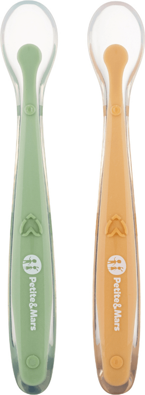 PETITE&MARS Silikonske žličke s torbico, set 2 kos, Take&Match Pea - Ochre 6m+