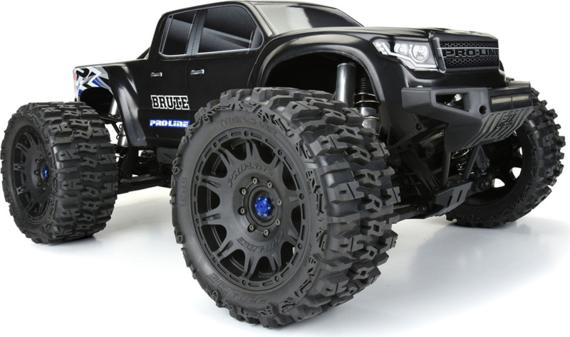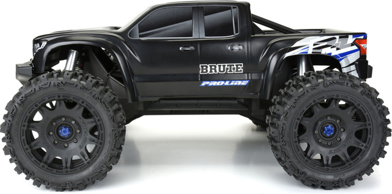 Pro-Line karoserija črna Brute Bash Armor od Pro-Line, za RC modele avtomobilov X-MAXX v merilu 1:5, medosna razdalja 480mm, dolžina 705mm, širina 274mm. Izdelana iz trpežnega močnega materiala Bash Armor. Slika celotnega modela je zgolj ilustrativna.