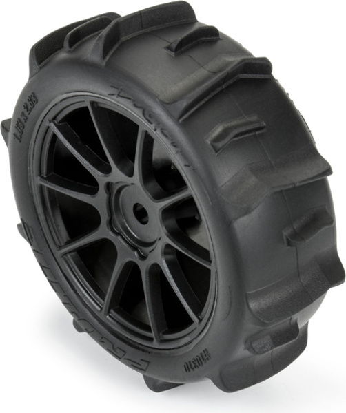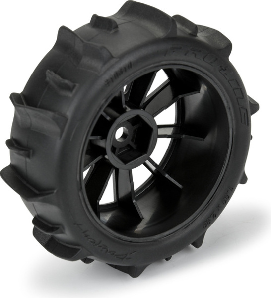 Kompletné kolesá Pro-Line pre RC modely áut 1:14 Typhon GROM. Rozmer ?72x26 mm. Disk Mach-10 má čiernu farbu. Pádla pneumatiky Dumont 1.9". Unašač je šesťhran 12mm. Vložka Open Cell.