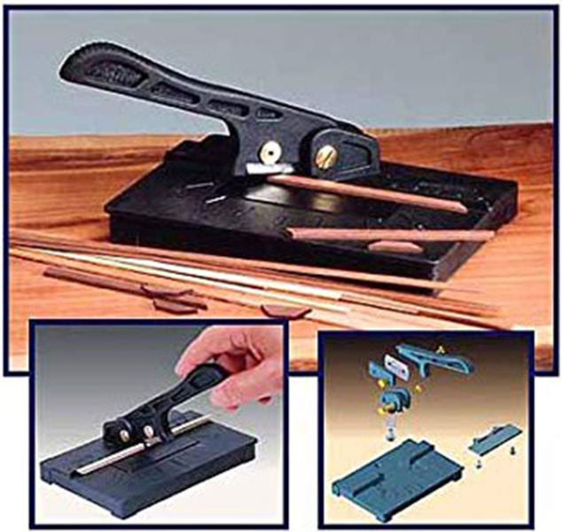 AMATI Cutter (mini vzvodne škarje) Master Cut vam omogočajo natančno deljenje lesenih ali plastičnih trakov. Vrtljiva roka z rezilom lahko reže material pod kotom od -45° do +45°. Zahvaljujoč prislonu je možno razdeliti enake kose. Izdelan iz močne plastike in kovine, vključuje rezervna rezila. Dimenzije osnovne plošče so 155x100 mm.