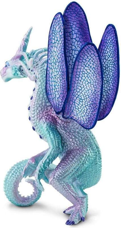 Pravljični zmaj z nežnimi barvnimi detajli, primeren za igro in zbirateljstvo.