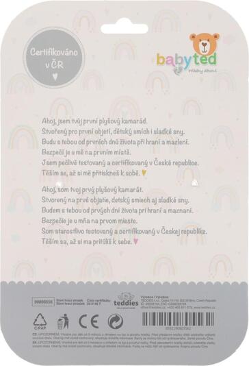 Slonček je izdelan iz mehkega, prijetnega pliša, ki je primeren že za najmanjše otroke. Kontrastni vzorci na ušesih in trebuščku spodbujajo vizualno zaznavanje dojenčka.