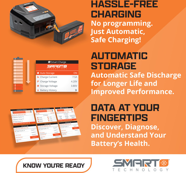 LiPol baterije Spektrum™ Smart G2 shranjujejo protokol napak, vključno s številom primerov pregrevanja, prenapolnjenja in prekomernega praznjenja. Ti podatki lahko pomagajo pri ugotavljanju primernosti za določeno aplikacijo. Inovativne baterije Spektrum™ Smart G2 LiPo se uporabljajo tako enostavno, da se skoraj same poskrbijo za sebe. S tehnologijo Smart G2 je enostavno doseči vrhunsko zmogljivost, zanesljivost in življenjsko dobo baterije!