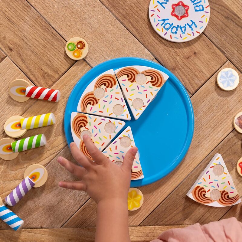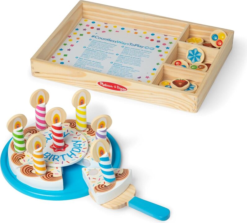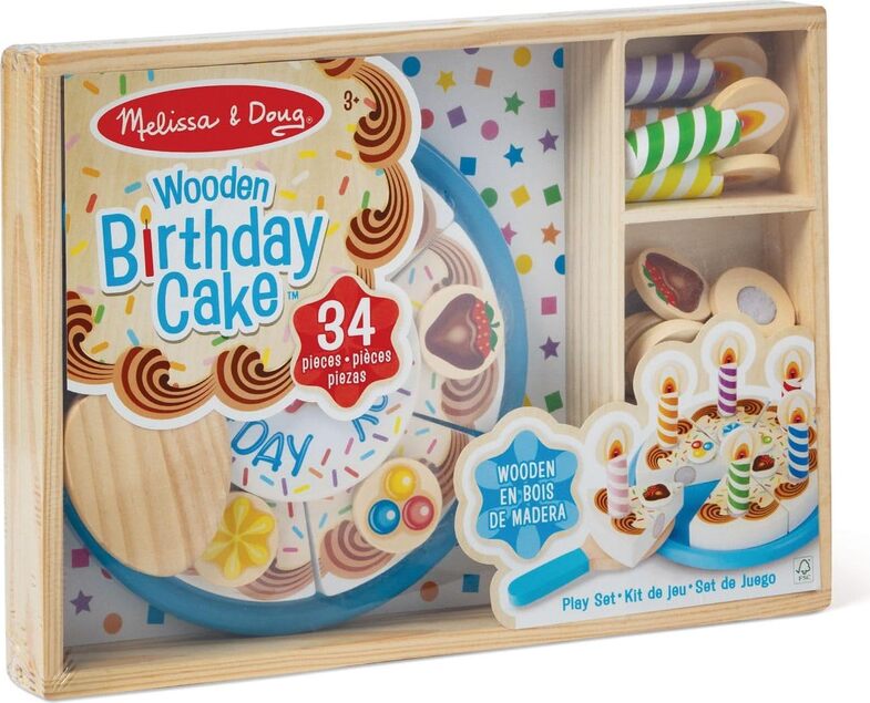 Tortna igrača je odličen dodatek otroški kuhinji ali trgovini, a odlično služi tudi samostojno. Že več kot 35 let blagovna znamka Melissa & Doug predstavlja izobraževalne igrače, ki otrokom prinašajo dolgotrajno zabavo. Zgodbe o rojstnodnevnih praznovanjih se začnejo z igračami Melissa & Doug.