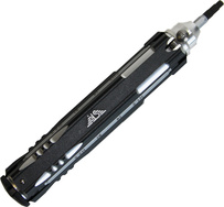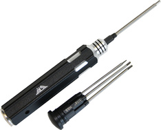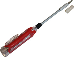 Značilnosti: Izvijač z zamenljivimi dvostranskimi nastavki, ki so praktično vgrajeni v plastični gumiran ročaj. Dolžina nastavka 30 mm, možnost regulacije dolžine ročaja, dolžina ročaja 105 mm in premer 20 mm. V paketu plastični ročaj in nastavki Šesterokotnik: 0,7 / 1,3 mm; 0,9 / 1,5 mm; 2,0 / 3,0 mm; 2,5 / 4,0 mm. Križni / ravno: PH000 / 1,5 mm; PH00 / 2,0 mm; PH0 / 2,5 mm; PH1 / 3,0 mm; PZ0 / 3,5 mm; PZ1 / 4,0 mm. Torx: T4 / T8; T5 / T9; T6 / T10; T7 / T15.