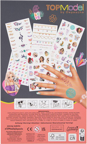 Pravi TOPModel tetovažni sen: 6 listov začasnih tetovaž s čudovitimi motivi, ikonami, vzorci in črkami. Preprosto pritrdite na kožo z navlažitvijo.