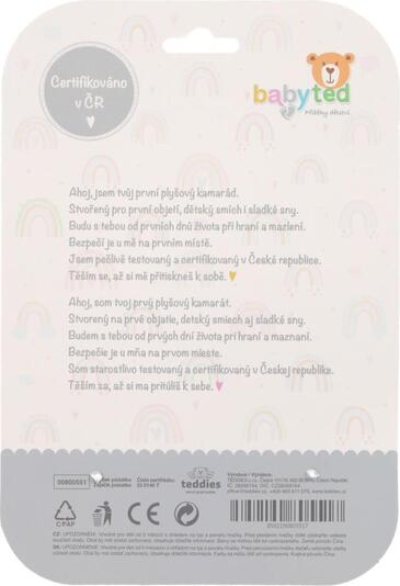 Zajček je izdelan iz mehkega in varnega pliša, primernega tudi za najmanjše otroke.